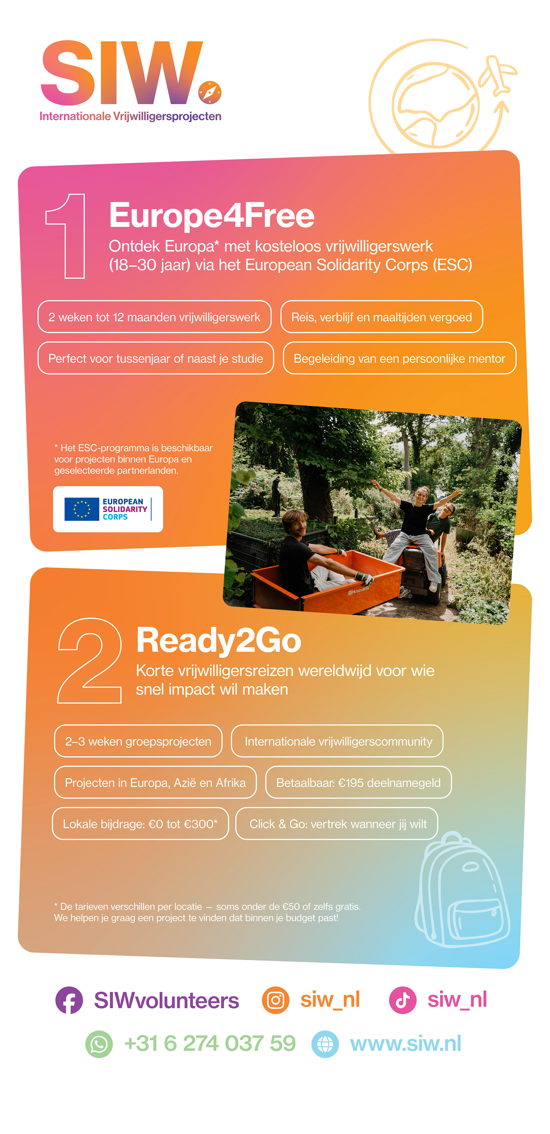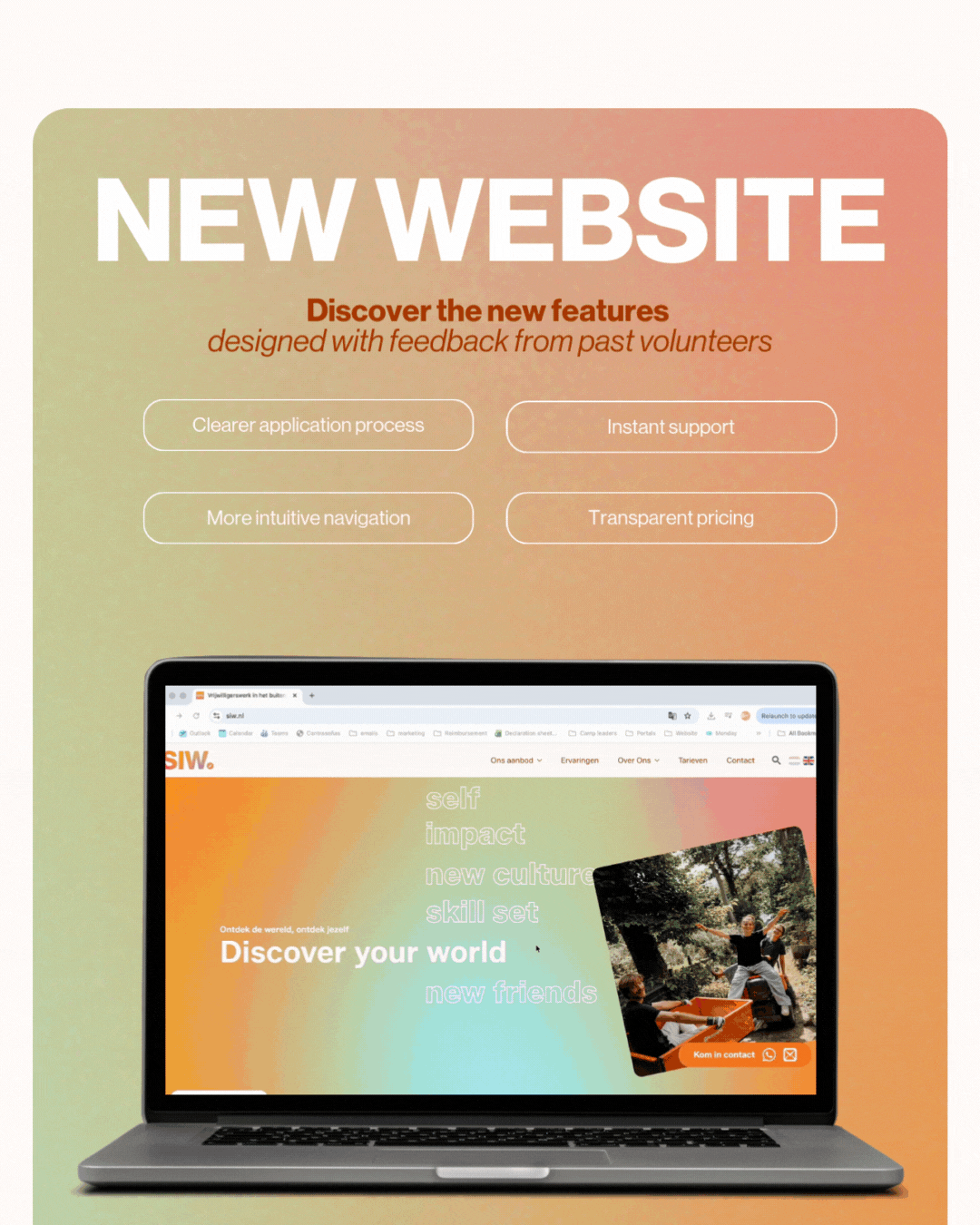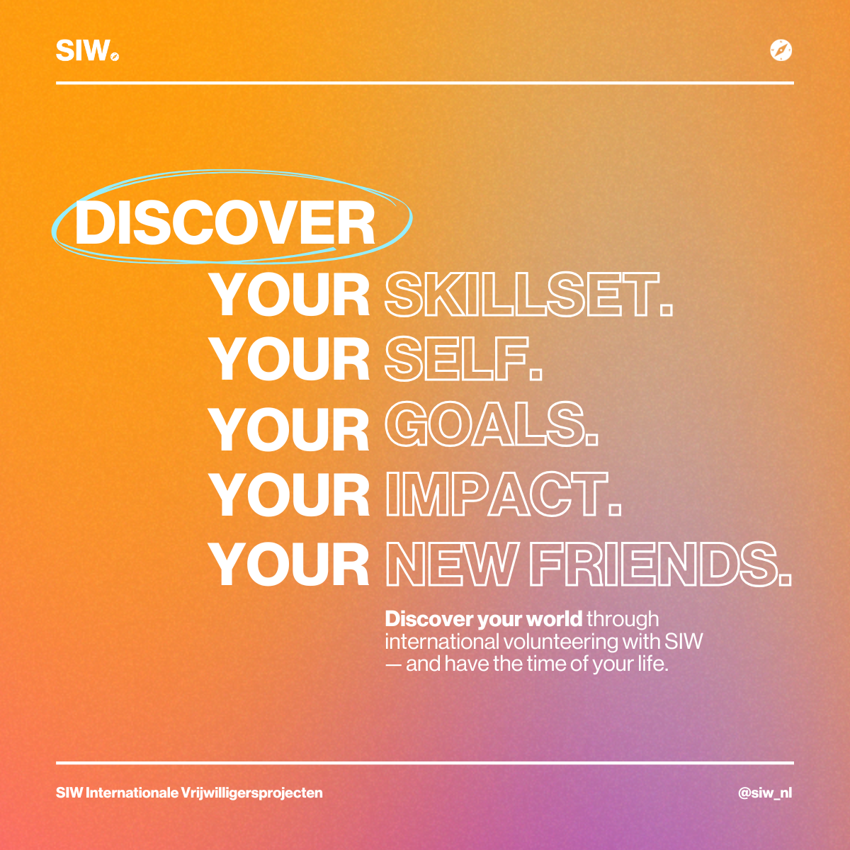 SIW Internationale Vrijwilligersprojecten is a Dutch NGO that empowers young people to engage in international volunteer work. The organization sought a renewed brand identity, clearer communications and stronger engagement among younger audiences with a limited to no budget.